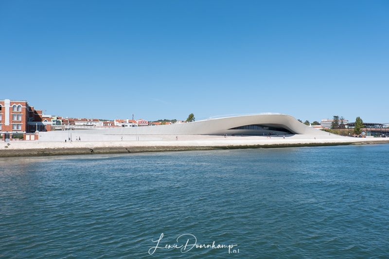 Eenmaal weer op de boot richting het centrum kwamen we wat dichter langs de wal. Ook dan vallen de bijzondere gebouwen weer op. Hier het vrij nieuwe museum “Maat”, Museum of Art, Architecture and Technology: