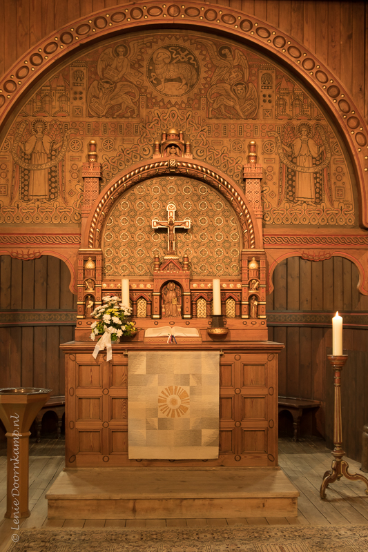 In het dorp waar wij verbleven staat een zogenaamde Stabkirche, een staafkerk. Op internet staat een hele uitleg hierover, dat kun je hier lezen. Deze kerk was het start- en eindpunt van onze wandeltocht.