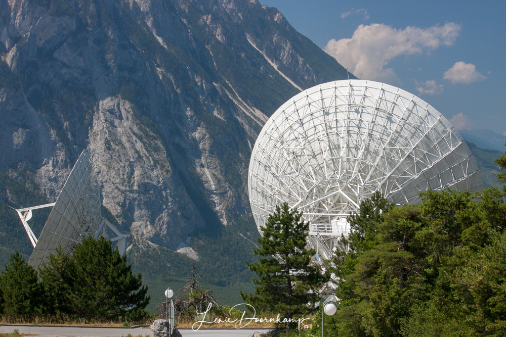Aan deze kant van Wallis wordt Duits gesproken, in het gebied waar we eerst waren was dat hoofzakelijk Frans en zelfs de jonge mensen kunnen (of willen) daar geen Engels spreken. Maar met Duits redden wij ons ook aardig. Het komt hier allemaal wat vriendelijker over.  Onderweg reden we door Leuk en Leukerbad en kwamen we langs een satellietstation. Best indrukwekkend als je van dichtbij ziet hoe groot die schotels zijn: